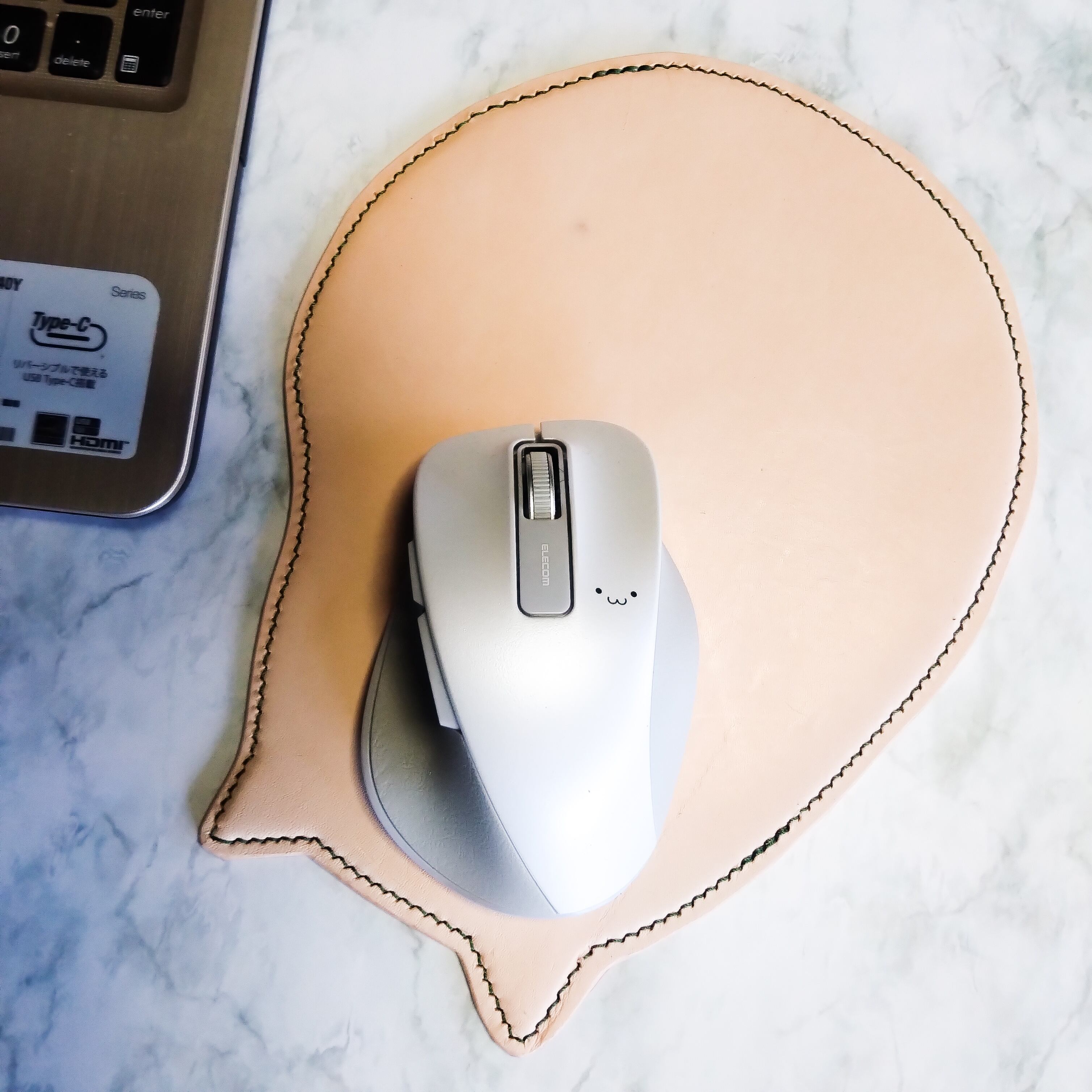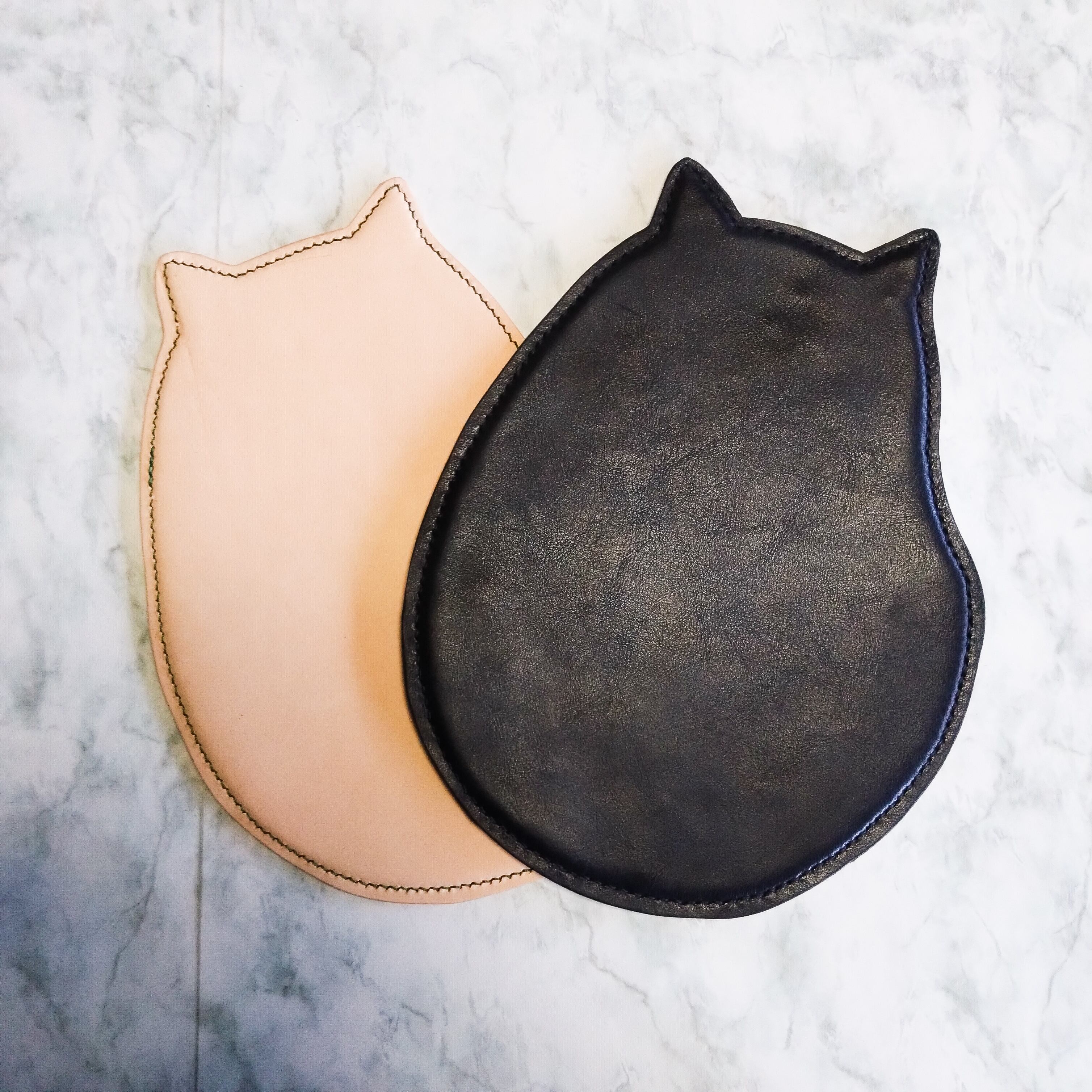 本革を使用して猫型のマウスパッドを製作しました!