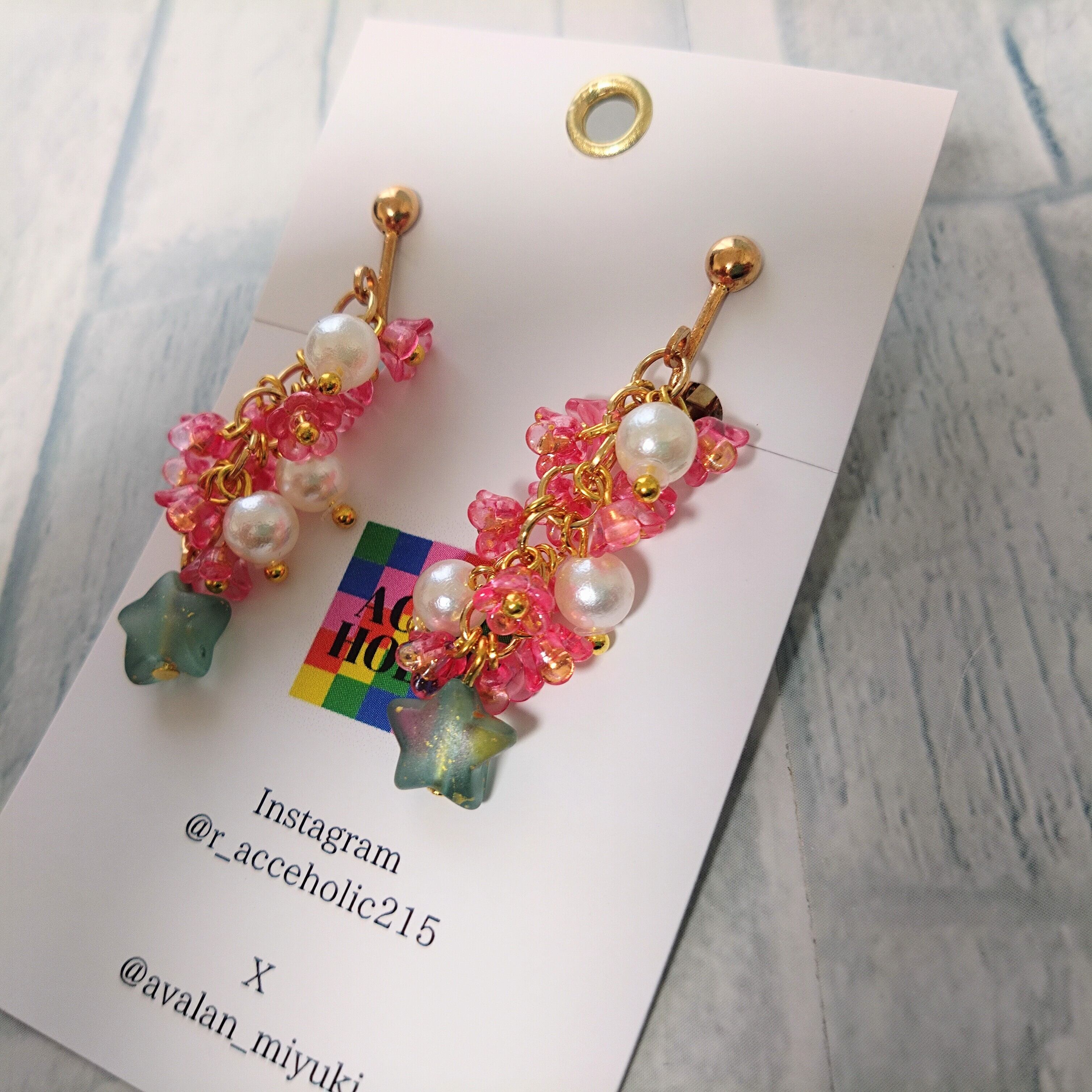 Xmas フラワー 星 赤 イヤリング ピアス イヤーカフ | *金属アレルギー対応*ハンドメイドアクセサリーのお店 ACCE HOLIC